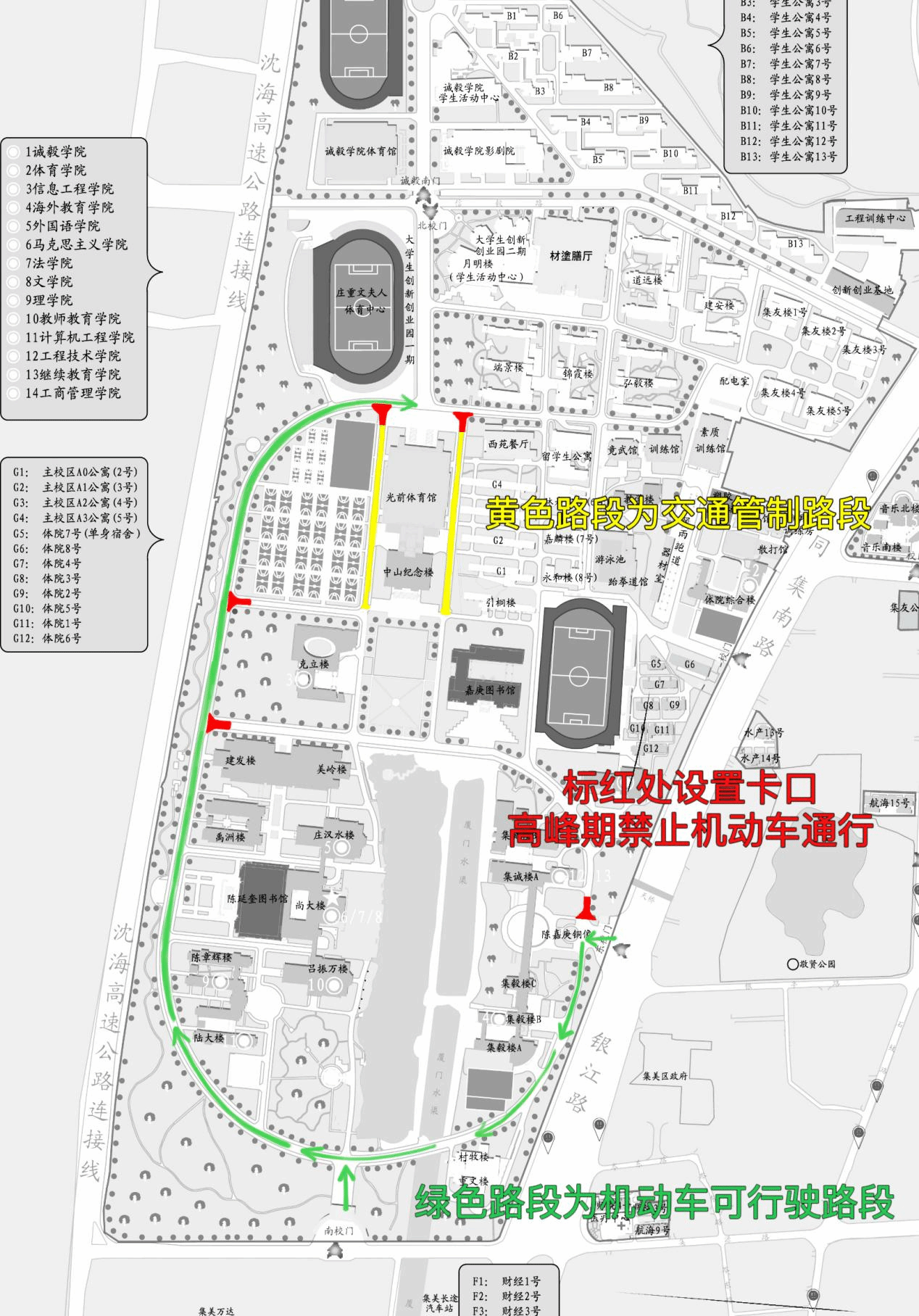 关于主校区部分道路上下课高峰期禁止机动车通行的通知