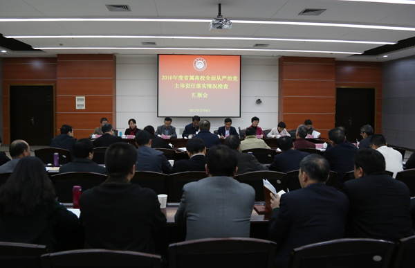 3月6日,省委教育工委检查组对我校党委2016年度全面从严治党主体责任和意识形态工作责任制落实情况进行检查。检查组由省教育纪工委书记、省教育厅纪检组长巫文通带队。