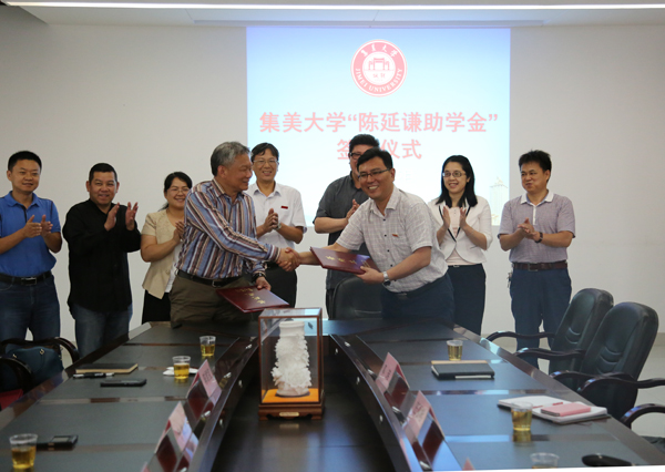 6月5日下午,我校“陈延谦助学金”捐赠签约仪式在法学院会议室举行。该助学金捐赠人新加坡陈延谦基金会副主席陈庆力先生在我校常务校董、陈嘉庚嫡孙陈君宝先生的陪同下出席了仪式,我校副校长曹敏杰、国际合作交流处负责人、法学院全体院领导出席了仪式。