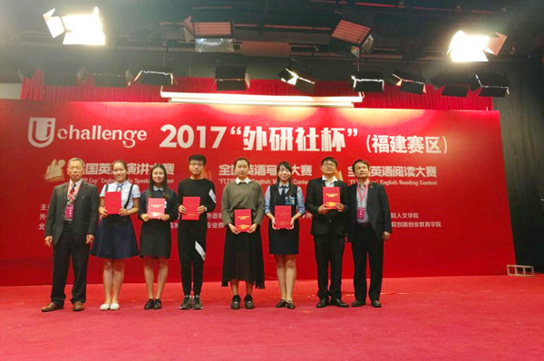 “外研社杯”全国英语演讲大赛、写作大赛和阅读大赛三大赛事统称“Uchallenge全国大学生英语挑战赛”,是由外语教学与研究出版社、教育部高等学校大学外语教学指导委员会、教育部高等学校英语专业教学指导分委员会和中国外语与教育研究中心联合主办,北京外研在线教育科技有限公司和中国外语测评中心联合承办的公益大赛,已成为全国参赛人数最多、规模最大、水平最高的英语赛事,为全国大学生提供展示外语能力、沟通能力与思辨能力的综合平台。在2017年“外研社杯”全国英语大赛(福建赛区复赛)中,来自全省各高校80名选手参加演讲大赛复赛、117名选手参加写作大赛复赛、116名选手参加阅读大赛复赛。