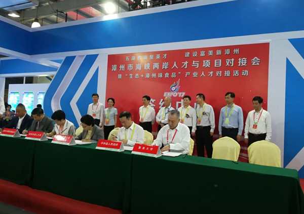 会上,黄德棋代表学校与平和县人民政府签订了“平和县人民政府—亚洲中文精品乱码科研协作框架性协议”;我校食品与生物工程学院蔡慧农教授的“琯溪蜜柚NFC果汁加工关键技术”、倪辉教授的“柚子茶叶混合饮料加工关键技术”、肖安风教授的“海藻经济多糖改性酶的发酵生产及应用技术开发”分别与福建国农农业发展有限公司、福建平和宝峰罐头食品有限公司、福建绿新食品有限公司签订了项目研究合作协议。