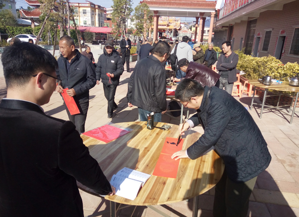 1月14日上午,校工会组织教工书法协会10多名书法家到同安莲花镇窑市村开展送春联下乡活动,为村民们送上新春祝福。