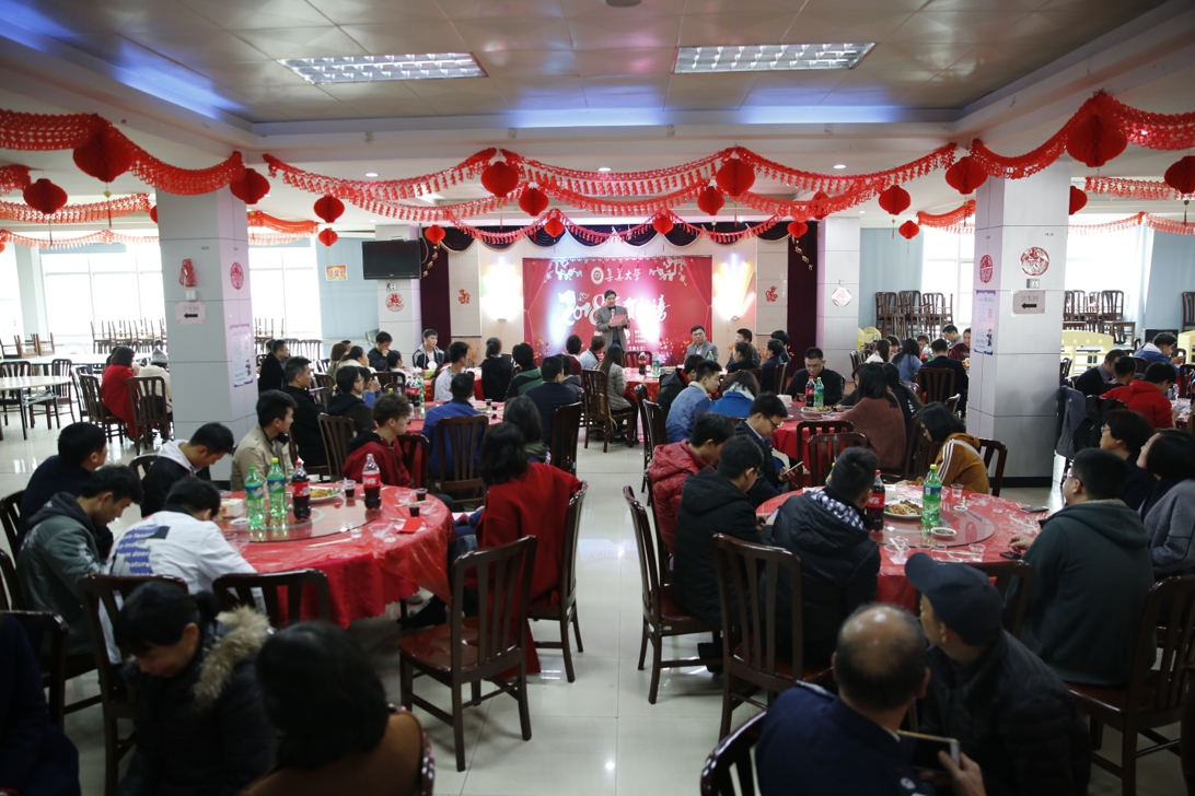 中午,李清彪、郑志谦,校相关部门、学院负责人与100多名留校学生和政工干部、丹田物业人员、后勤集团员工欢聚一堂,一起围炉、拉家常、话情谊,共同迎接狗年春节的到来。