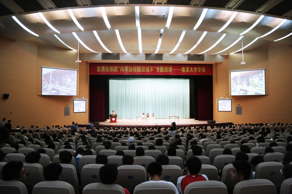 本次专题巡讲是集美区检察院开展抵制非法校园贷主题巡讲活动的第九场,通过图文展板、法律情景剧、专题宣讲、普法歌舞等形式,向在校师生传递非法校园贷的特征、危害以及预防和法治思维。