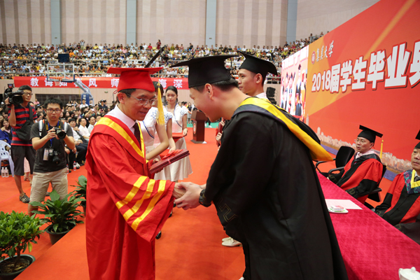 校党委书记辜芳昭为优秀毕业生代表颁发优秀毕业生证书,校长李清彪为毕业生代表颁发毕业证书并以充满诗意的语言发表了热情洋溢的讲话,表达了对全体毕业生的依依不舍和深深祝福。李清彪对即将踏入社会的全体毕业生提出两点希望:一是人生抢跑争风景,捷足先登上高峰。希望毕业生在人生“紧要之处”比别人早努力一点,早起步,快抢跑,捷足先登进入海阔天空的境界。二是时间碎片汇星河,心流有序梦成真。希望毕业生懂得充分利用闲暇时间并狠下苦功,把时间碎片串成星河,照亮青春前行的漫漫征途。副校长曹敏杰宣读授予2018届本科生和研究生学位决定、优秀毕业生表彰决定。