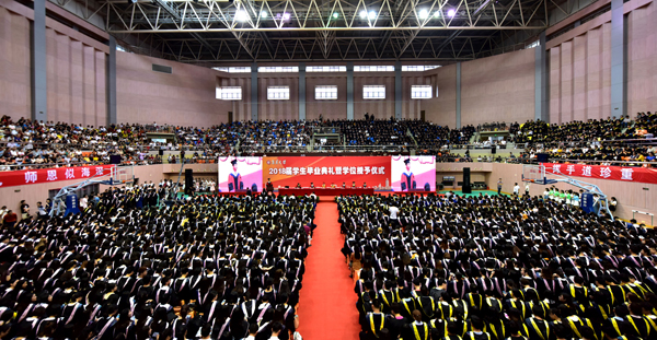 6月22日上午,我校举行2018届学生毕业典礼暨学位授予仪式。校领导,学校办公室、宣传部、学生处、教务处、研究生处、校团委等部门负责人,各学院相关人员及毕业生家长等6000多人参加了典礼。毕业典礼由校党委副书记洪文建主持。