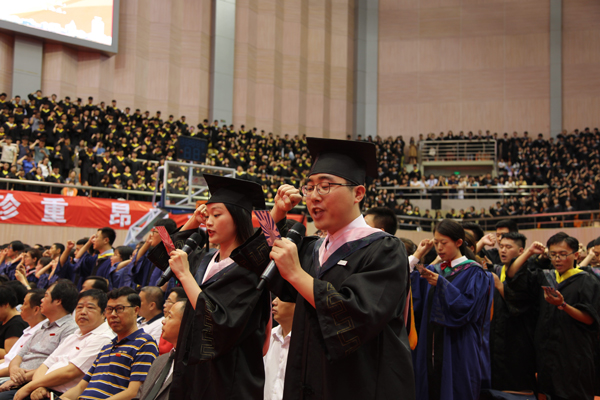 “嘉庚精神,建业立人;心存高远,行当笃正。”全体毕业生进行了庄严的毕业宣誓,表达了“有荣母校,不负此生”的豪迈誓言。