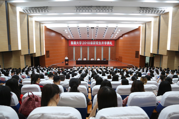 9月19日下午,我校在尚大楼报告厅举行2018级研究生开学典礼。校党委书记辜芳昭,校党委副书记郑志谦、洪文建,校党委常委、副校长于洪亮、谢潮添等在家校领导,有关职能部门负责人,相关学院党委书记、院长及2018级研究生出席了开学典礼。典礼由谢潮添主持。
