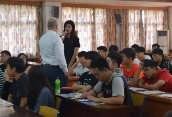 会谈结束后,Joshua McKeown还为教育部留学服务中心我校战略合作伙伴项目2018级新生做了关于留学美国纽约州立大学奥斯威戈校区的讲座。讲座中,他从学校办学环境、专业和奖学金设置、社团活动等方面介绍了留学纽约州立大学奥斯威戈校区的美好前景和突出优势,并耐心回答了同学们提出的相关问题。