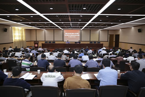 10月30日下午,我校中层干部深入学习贯彻习近平新时代中国特色社会主义思想专题研讨班在尚大楼103会议室举行开班式和首场辅导报告。全校中层干部共150名参加了开班式,校党委副书记郑志谦作动员讲话。