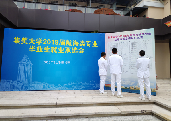 11月4日至5日,我校举办2019届航海类专业毕业生就业双选会。中远海运船员管理有限公司、交通运输部救捞局、中国科学院海洋研究所等来自全国各地的60余家企事业单位参会,为毕业生提供了1948个需求岗位。