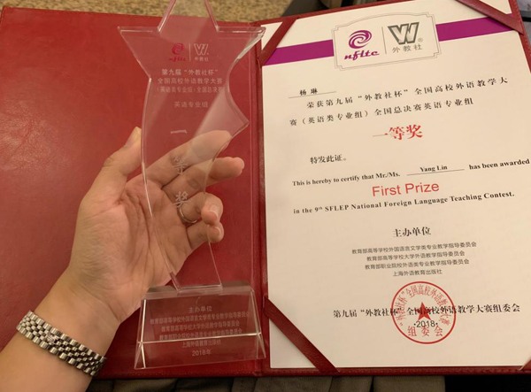 12月2日,第九届“外教社杯”全国高校外语教学大赛全国总决赛在上海外国语大学顺利落幕。经过三天全国决赛、总决赛的激烈角逐,我校诚毅学院杨琳老师荣获英语专业组一等奖,为我省、我校争得了荣誉。