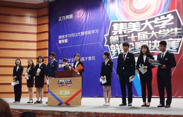 决赛中,理学院代表队与工商管理学院代表队围绕“网络学习是否可以代替传统学习”展开季殿军之争,双方选手引经据典,结合当下时事展开唇枪舌战。教师教育学院代表队和文学院代表队围绕“当代大学生使命高于责任还是责任高于使命”进行冠亚军争夺,双方选手从不同角度展开辩论,逻辑严谨、思维敏捷,旁征博引、妙语连珠。