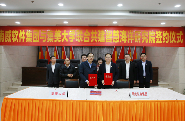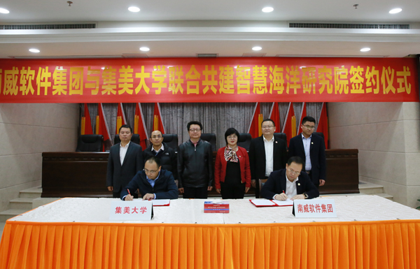 12月28日,我校与南威软件集团共建智慧海洋技术与产业发展研究院签约仪式在南威软件集团举行。南威软件集团董事长吴志雄,我校副校长谢潮添,我校科研处、轮机工程学院、“数字福建”卫星通信与海洋监测物联实验室及南威软件集团相关负责人出席了签约仪式。