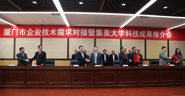 据悉,我校积极开展服务地方产业经济的协同创新工作,目前与厦门市企事业单位共建各类研发机构(平台)36个,在海洋生物食品、水产品加工、海洋工程装备、智能制造、新能源开发利用、光电信息等技术领域取得了一大批科技创新成果并得到了产业化应用,为厦门市和福建省经济社会发展提供了有力的科技支撑,推动了地方经济发展的转型升级。本次会议的召开,有助于加强校地企科技合作、促进校地企科技成果对接,将进一步深化学校教育科研事业与厦门市经济社会发展的携手合作。今后,学校将进一步结合厦门市千亿产业链和重点新兴产业的发展需要,特别是紧密结合集成电路、人工智能、智能制造、新材料和生物医药等战略性新兴产业发展,进一步加强研发队伍和平台建设,通过与厦门市企业之间的产学研无缝对接,促进产学、产教、产地融合发展,增强企业自主创新能力,破解企业发展技术难题,推动厦门市企业在新技术、新工艺、新材料、新设备的研发与应用升级。