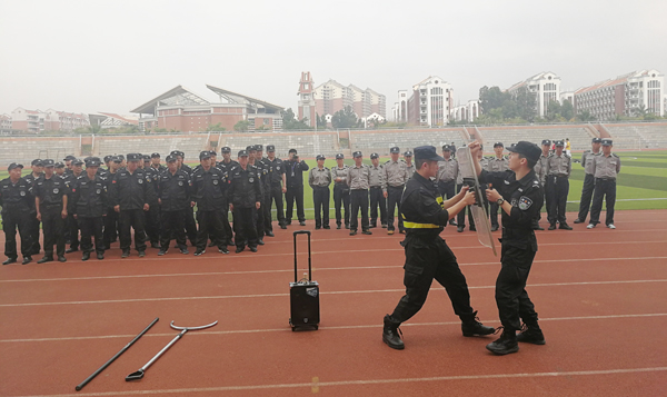 为进一步提升校园应对暴力恐怖袭击以及防范处置突发性、群体性事件的能力,3月20日下午,保卫处邀请集美区公安分局反恐防暴大队和集美学村派出所负责人,对我校专兼职处突队员、丹田物业、厦煌物业相关人员百余人进行了应急处突培训演练。