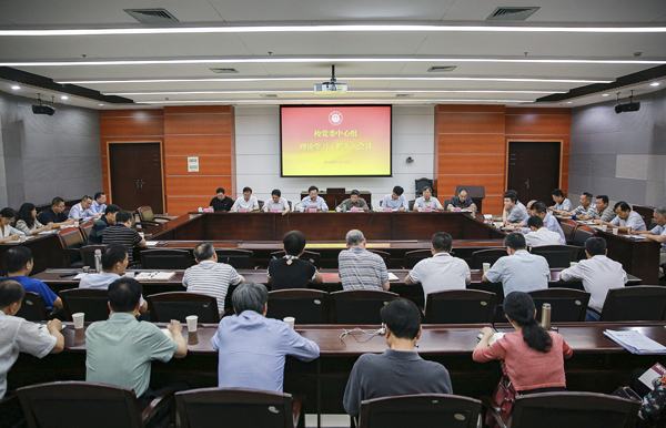 5月23日下午,校党委书记沈灿煌主持召开校党委中心组理论学习(扩大)会,传达学习教育部关于招生工作问题的情况通报。校领导、各部处主要负责人、各学院党委书记参加了学习。