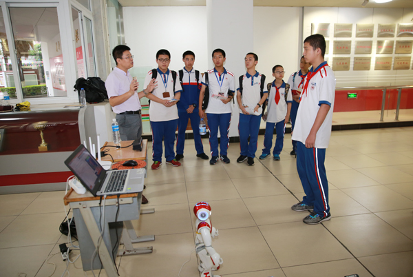 签约仪式结束后,我校领导还看望了在厦门第一中学工作的校友,并和校友们亲切座谈。我校机器人应用创新团队的专家,为厦门一中机器人社团的同学演示了基于Kinect的人机协同、手机遥控机器人、机器人目标识别、机器人陪伴服务四个项目,就人机协同、计算机视觉、远程遥控、语音交互、智能决策、运动控制等方面与厦门第一中学高中生进行了面对面交流,进一步激发了他们对机器人领域探索的兴趣。