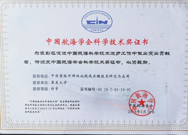 近日,中国航海学会成立40周年活动暨专题讲座在北京举行,颁发了2018年度中国航海学会科学技术奖,我校副校长于洪亮参加了活动。以我校为主要完成单位的“中国商船开辟极地航线关键技术研究与应用”项目获中国航海学会科学技术奖特等奖。