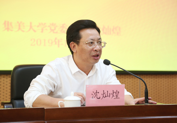 沈灿煌指出,我们的高校是党领导下的高校,是中国特色社会主义高校,这就决定了我们的教育必须把培养社会主义建设者和接班人作为根本任务。对于我校来说,弘扬以爱国主义为核心的嘉庚精神,为党育人、为国育才,就是学校的初心;学校新的长征路就是全力推进一流大学建设,服务地方高质量发展。