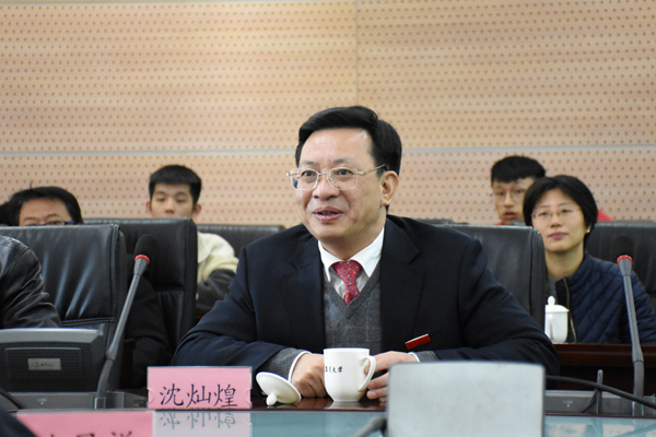 沈灿煌对沈昌祥一行的到来表示热烈欢迎,介绍了我校的办学情况、计算机类专业发展方向;与沈昌祥一行就如何加速建设“双一流”高校、实现我校大变革、大调整和大发展,学科建设重点突破、特色发展等方面进行了深入探讨。