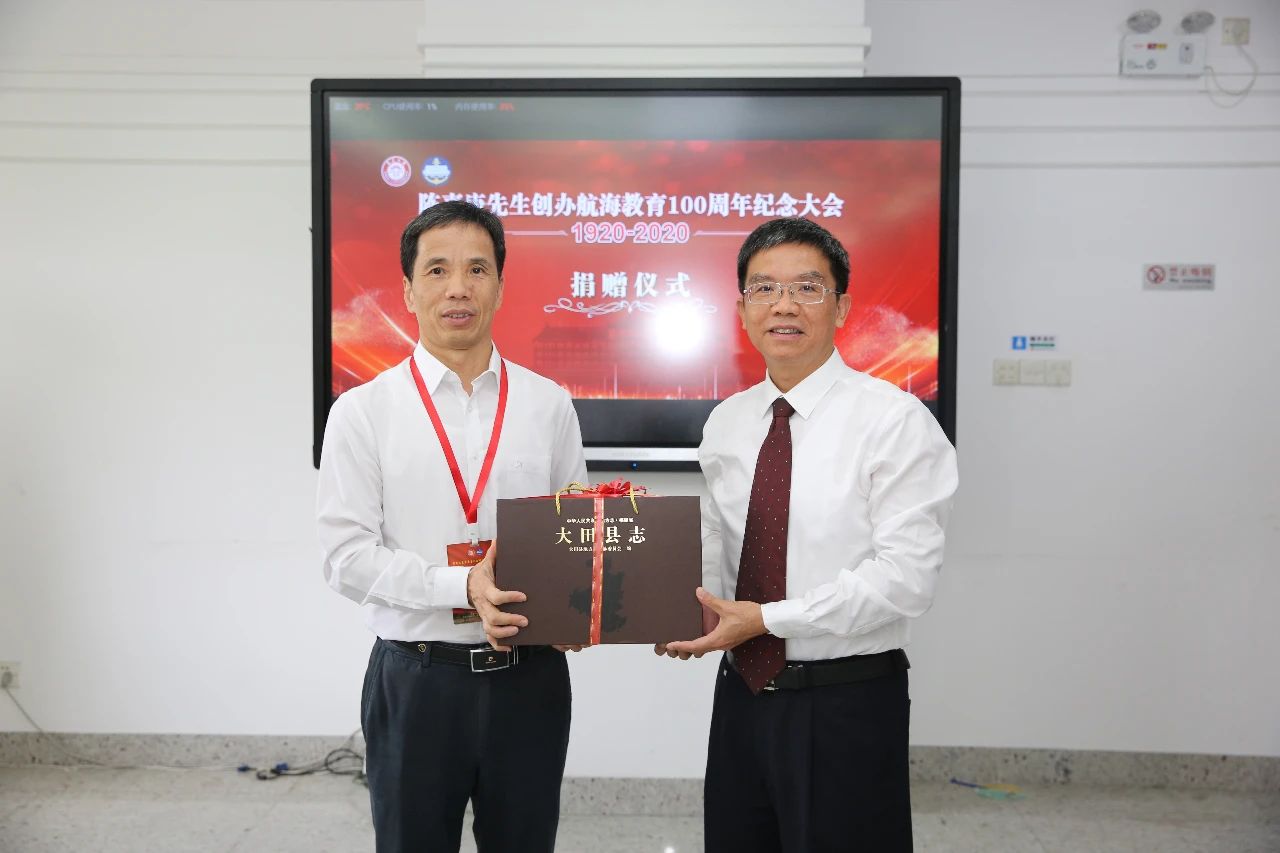 大会开始前,李清彪代表学校接受中远海运集团捐赠的船模和大田县捐赠的《大田县志》。