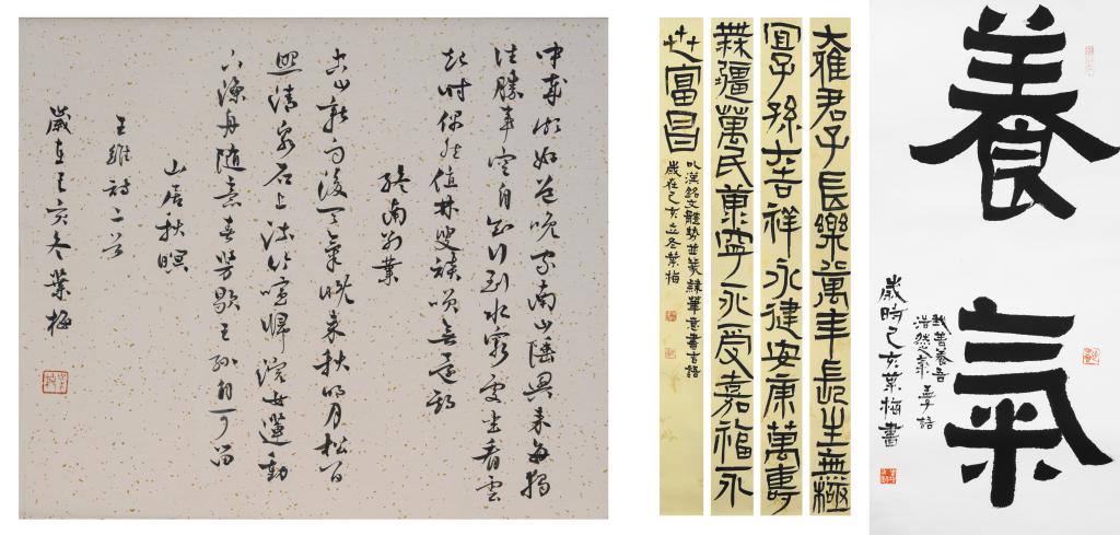 本次书法展共展出叶梅教授书法作品58件(套),涵盖了篆、隶、楷、行、草五种书体,作品创作时间从2016年至今,是其将理论研究结合书法实践的一次展示。