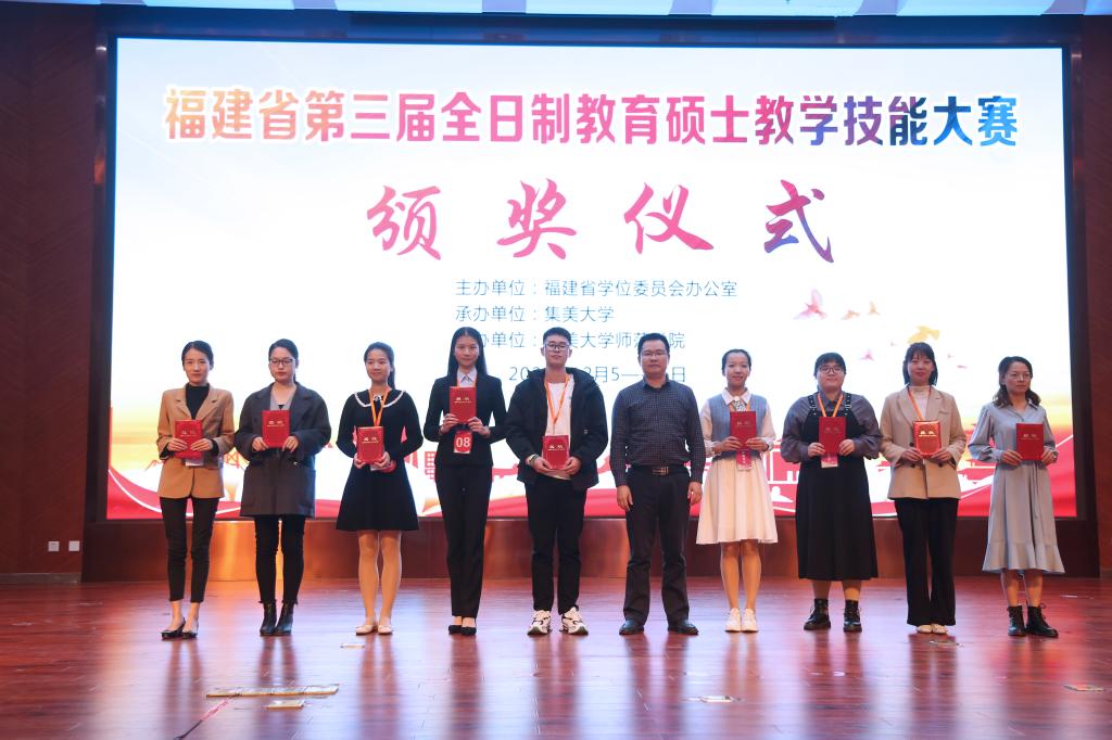 我校教育硕士研究生在此次大赛中取得优异成绩,潘婉婷、冯诗尹、黄安琪、林建辉、邱燕梅、刘思洋、曾文苑等7人荣获一等奖,马念、朱柯、刘春莉等3人荣获二等奖,章意培、石静萱、王佳鑫、李柯璇、刘诗婷等5人荣获三等奖。张哲英、许文君、刘小辉、宾红华、谢加良、赖怡静、安小应鸟、李雪、陈文胜、谢书书、林晓霞、毛青松、朱福胜、朱荣坤、陈金田、杨建华、李彦敏等17位老师荣获“优秀指导教师”称号。