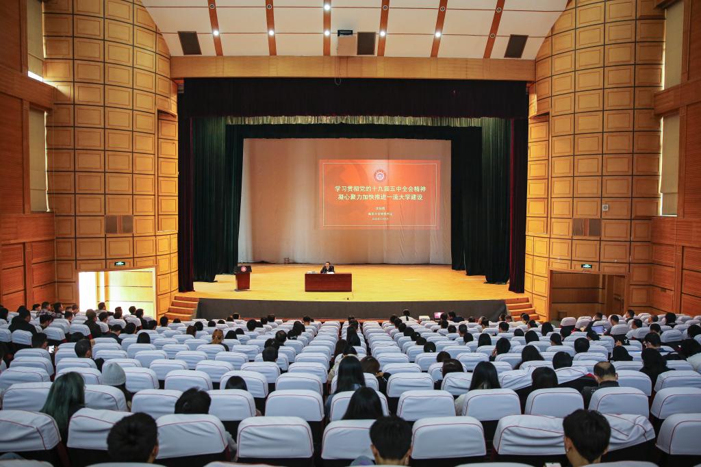 宣讲会上,沈灿煌围绕我校学习好、贯彻好、落实好党的十九届五中全会精神,以建设“双一流”高校为目标,强调我校今后的工作要始终坚持社会主义办学方向,全面落实立德树人根本任务;更好地服务省市高质量发展超越;努力推进学校治理体系和治理能力现代化;凝聚各方力量,持续不断拓展办学资源。