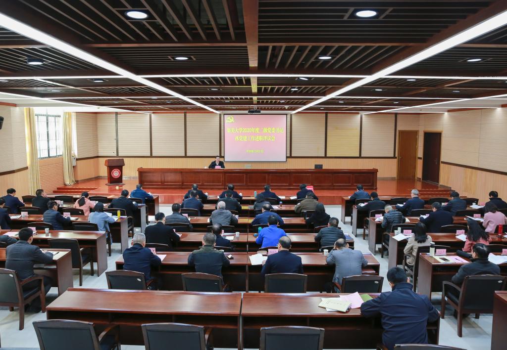 12月31日下午,我校在尚大楼103会议室召开2020年度二级党委书记抓党建工作述职评议会。党员校领导,校党委委员、纪委委员,党委部门和群团组织主要负责人,各二级党委书记参加会议。会议由校党委书记沈灿煌主持。