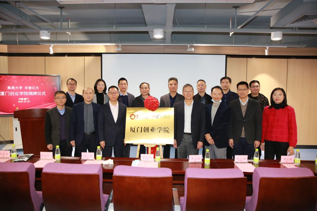 1月27日上午,我校与北京华普亿方教育科技股份有限公司共建“厦门创业学院”揭牌仪式在校外教育基地——厦门万翔国际商务中心1号楼9层举行。我校副校长曹敏杰、华普亿方集团董事长付鹏,厦门市人事局、科技局、教育局和自贸区管委员等部门领导,我校发展规划处、继续教育学院、创新创业中心等相关单位负责人参加了揭牌仪式。