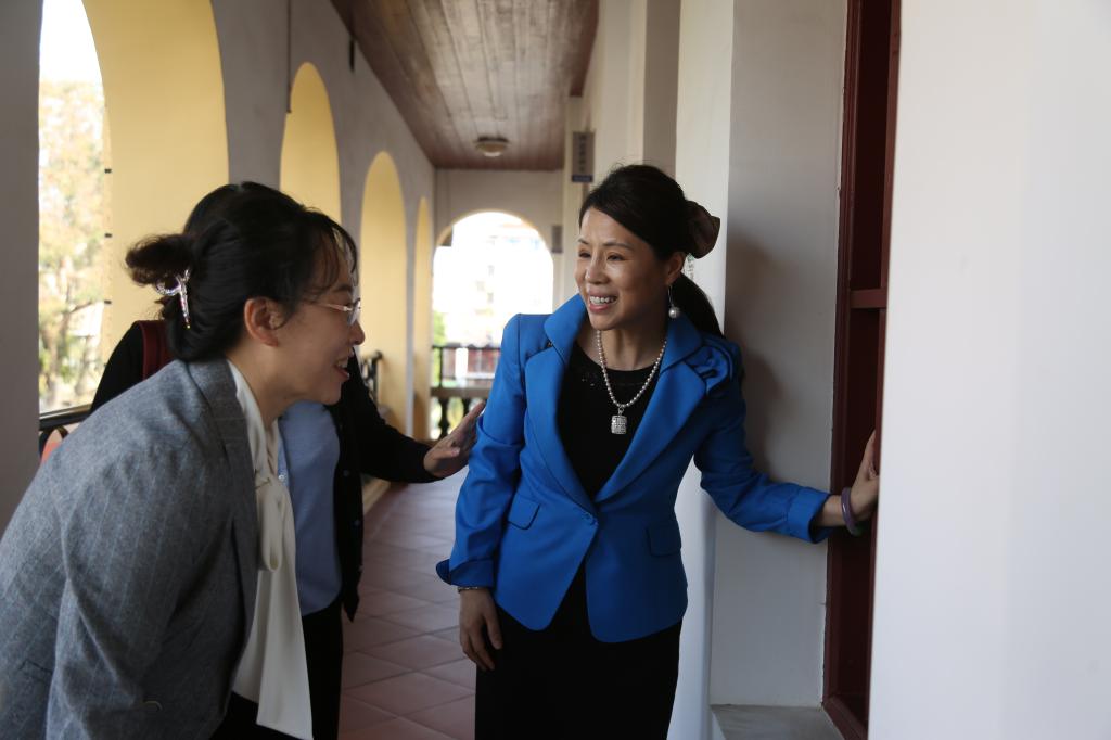 2月24日下午,我校音乐1987级校友、旅日侨胞抗疫英雄刘丹蕻女士一行返校参观交流。受校党委书记沈灿煌的委托,校党委副书记、校长李清彪代表校党政领导及全体师生员工热忱欢迎校友“回家”,并为刘丹蕻佩戴校徽。校党委副书记洪文建,学校相关单位负责人及各界校友、师生代表等参加交流座谈。