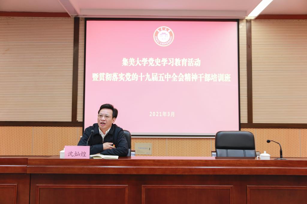 校党委书记沈灿煌作动员报告,提出通过学党史、悟思想、办实事、开新局,通过认真谋划学校“十四五”发展规划,抓学科、强专业,努力推进一流大学建设,服务省市高质量发展超越。