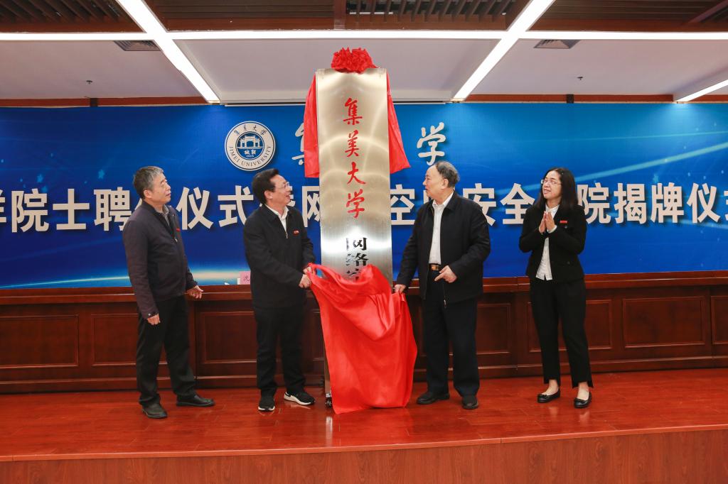 仪式上,沈灿煌和沈昌祥院士共同为我校“网络空间安全学院”揭牌。随后,沈昌祥院士作了《用科学网络安全观加快网络空间安全学科建设与人才培养》专题报告。