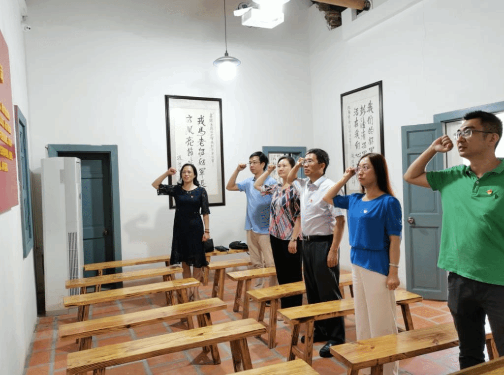 6月12日上午,国际合作交流处党支部组织全体党员参观了红色教育基地——彭德清纪念馆,并在党旗下重温入党誓词。校党委副书记、校长李清彪同志以普通党员身份参加了支部活动。