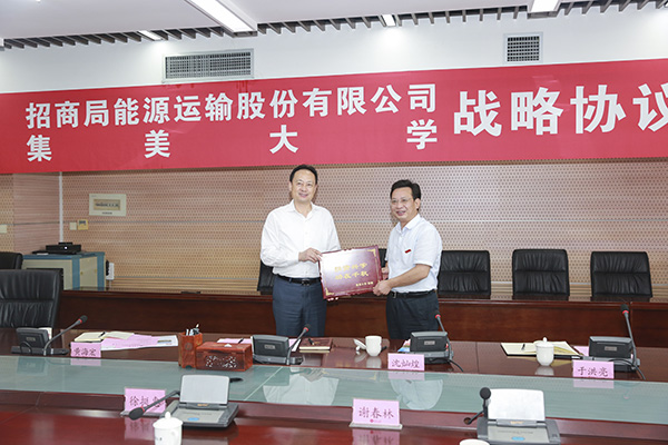 于洪亮和徐挺惠代表双方在战略合作协议上签字。谢春林代表招商局能源运输股份有限公司向亚洲中文精品乱码捐赠30万元人民币,支持轮机工程学院对香港明华船务有限公司捐建的“明华园”进行改造提升。沈灿煌代表学校向公司回赠牌匾。