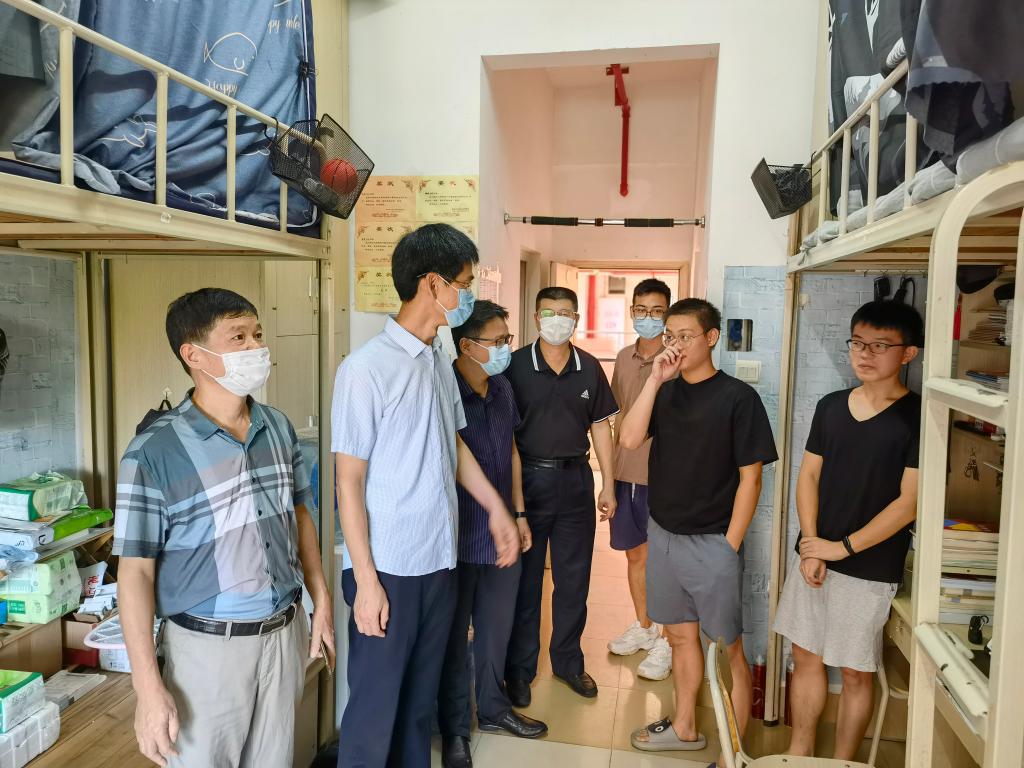 洪文建带队深入留校学生宿舍,与同学们亲切交流,为因承担科研任务、准备考研、考教师资格证、考公务员、参加社会实践和参加学科竞赛等原因暑期留校的学生加油鼓劲,了解他们科研、备考、疫情防控及学习生活等情况,再三叮嘱留校学生要注意宿舍用电安全,强调当前疫情防控形势依然严峻复杂,务必做好个人防护和健康监测,非必要不出校,确需出校的,要严格履行审批手续,让同学们感受到学校的关心爱护。在对各校区校门检查时,他要求门卫保安,务必加强进出校门的人员严格管控,严禁校外无关人员进入校门。