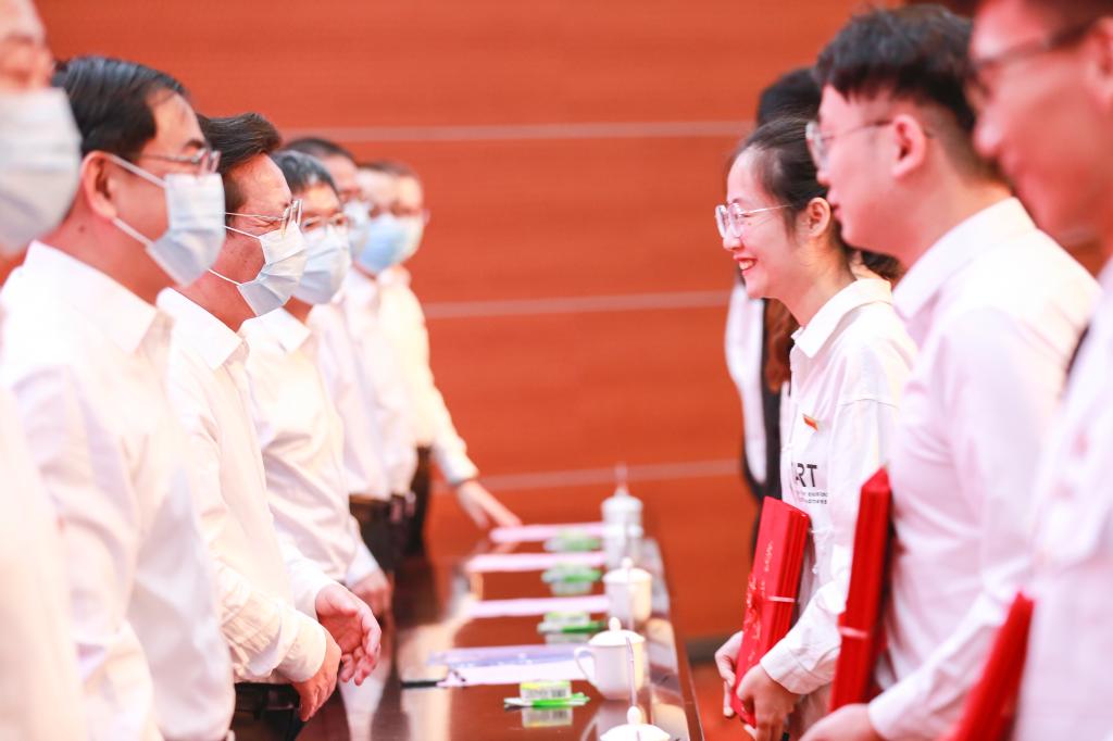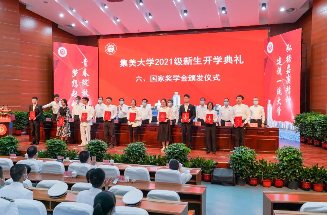 上午9时,典礼在庄严的国歌声中拉开序幕。校领导为学校2020年国家奖学金获奖代表颁发荣誉证书。