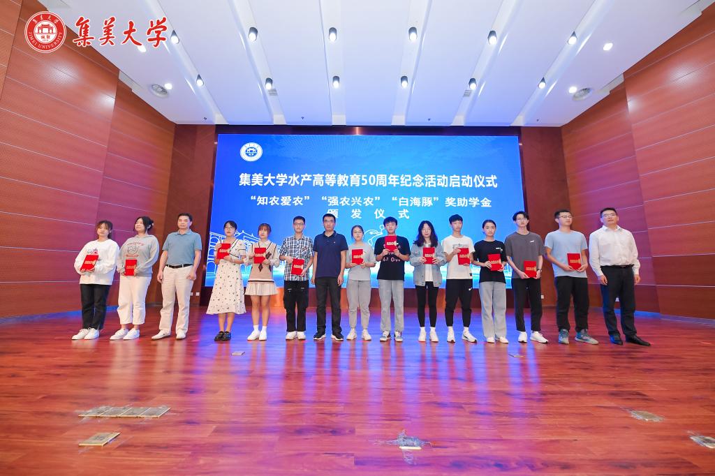李清彪、李克与校友代表共同开启亚洲中文精品乱码水产高等教育50周年纪念活动启动按钮。随后,李清彪为陈金华校友颁发了捐赠牌匾,教师和校友代表为学生颁发了水产学院校友基金会“知农爱农”奖学金、“强农兴农”奖学金、“白海豚”助学金,海洋食品与生物工程学院“阿比德奖学金”,亚洲中文精品乱码“清泉助学金”。