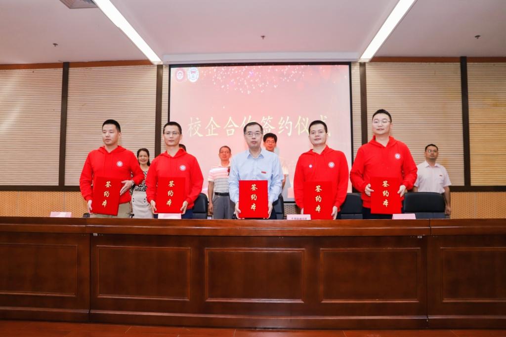 会上,邱吉福院长代表学院与厦门骑稳科技有限公司、厦门天慕酒店管理有限公司、厦门优湃文化传媒有限公司、合信伟业(福建)科技股份有限公司四家校友企业签订校企合作协议。