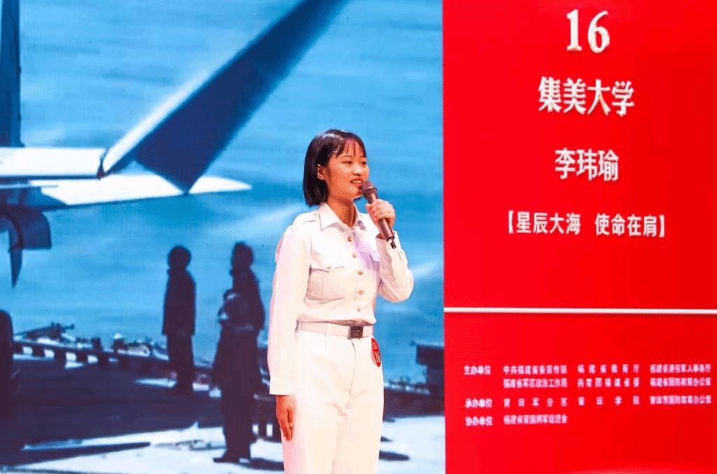 李玮瑜同学是海军002航母接舰部队的一名退役航母女兵,她以《星辰大海,使命在肩》为主题深情讲述了自己服役期间在山东舰上逐梦深蓝、守卫海疆的国防故事。“星辰大海,使命在肩,青春融入保家卫国,劈波斩浪,有召必回”是她的青春誓言,更是亿万青年对党和人民的郑重承诺。