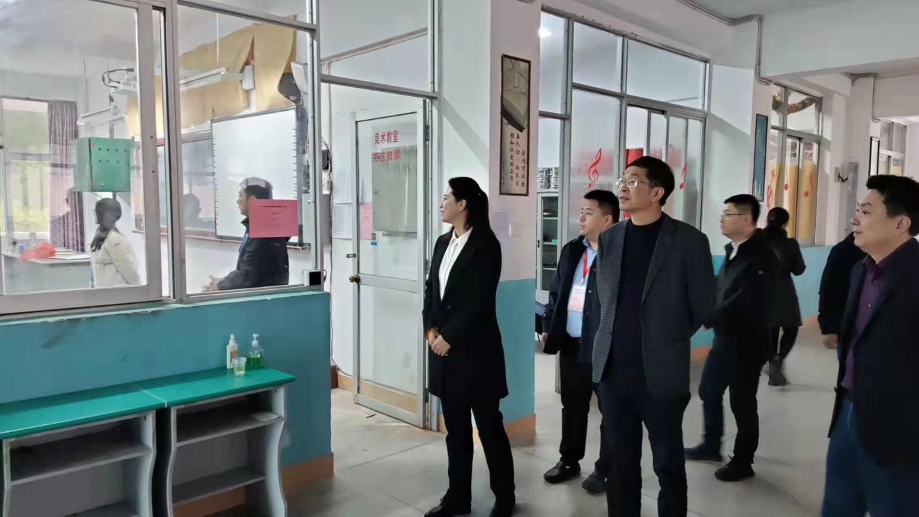 省政府副总督学李迅(左二)赴样本校检查指导艺术监测工作