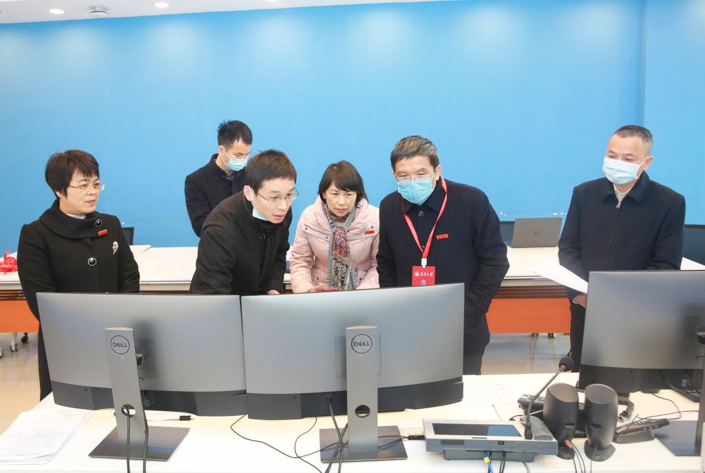 2月21日,我校如期开学。因疫情防控工作的需要,我校前两周实施线上教学。校党委书记沈灿煌、校长李清彪、副校长曹敏杰到校教学运行指挥中心进行网上巡课和指导,教务处、研究生处、信息化中心相关人员也全程关注线上直播教学过程。