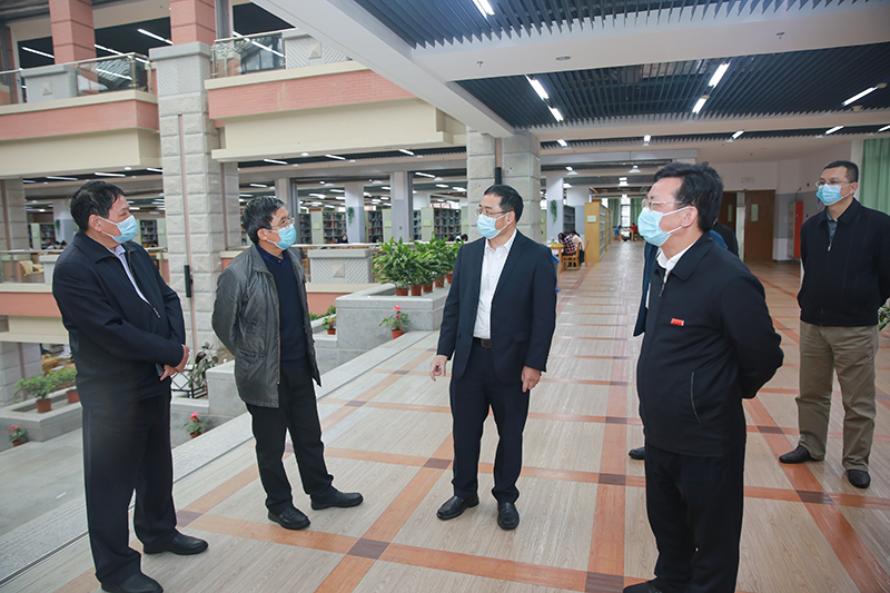 督导组一行深入校内隔离点、图书馆、线上教学指挥中心,了解重点地区返校师生隔离、封闭管理期间学生学习、线上教学等情况。校领导介绍了校园防控措施、重点地区返校学生隔离、校门管理、后勤物业人员健康监测,以及封闭管理期间图书馆和教室等重点场所学生学习情况、线上教学、学生思想政治教育、常态化核酸检测和核酸抽测、全员下沉一线等工作,以及各项防控措施的落实情况。