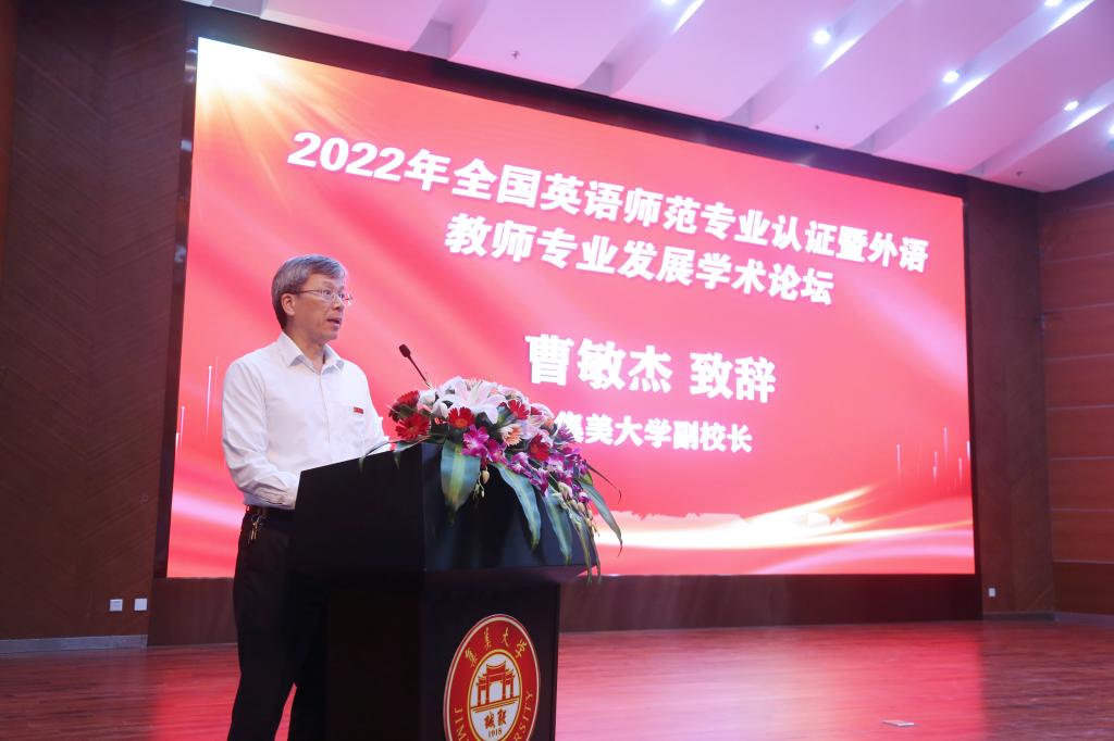 开幕式上,教育部高等学校外国语言文学类专业教学指导委员会主任、北京外国语大学副校长孙有中教授,亚洲中文精品乱码副校长曹敏杰教授及外语教学与研究出版社常小玲副总编辑分别致辞。教育部高等学校英语专业教学指导分委员会秘书长、湖南师范大学外国语学院院长曾艳钰教授,教育部师范类专业认证专家、山东师范大学外国语学院院长王卓教授,教育部师范类专业认证专家、福建师范大学外国语学院副院长兰春寿教授分别做主旨演讲。
