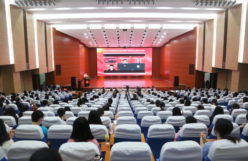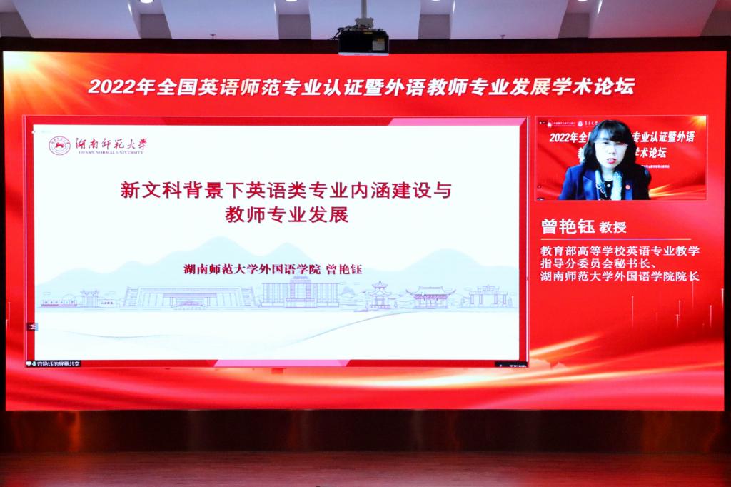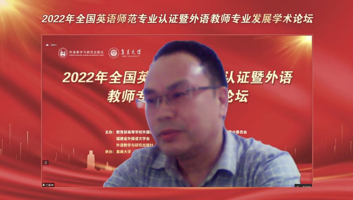 5月21日,由教育部高等学校外国语言文学类专业教学指导委员会英语专业教学指导分委员会、福建省外国语文学会、外语教学与研究出版社主办,亚洲中文精品乱码承办的“2022年全国英语师范专业认证暨外语教师专业发展学术论坛”在亚洲中文精品乱码召开。福建省外国语文学会会长杨信彰教授,闽南师范大学副校长张龙海教授,亚洲中文精品乱码外国语学院黄锐教授、张海燕教授联合主持论坛。论坛通过线上线下相结合方式举行,来自全国各地200多所学校6000多名专家学者线上参会,亚洲中文精品乱码外国语学院全院师生员工和部分福建省内兄弟院校专家线下参会,共同探讨外语基础教育高质量发展路径。