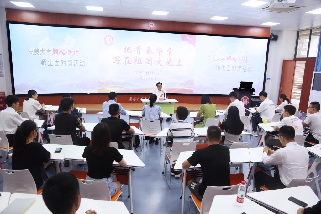 6月15日,我校在嘉庚图书馆举办“同心·同行”师生面对面座谈会。校党委书记沈灿煌与学校2022届毕业生代表谈青春梦想、话青年成长。