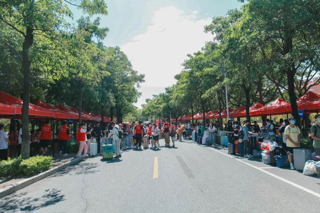 报到当天清晨,300余名青年志愿者在厦门北站、厦门站、高崎机场和集美长途汽车站,以饱满的精神状态热情迎接2022级新生。在各校区门口,校学生会、青年志愿者协会、校自律会设立青年先锋岗,为新生及时提供咨询和搬运行李服务。