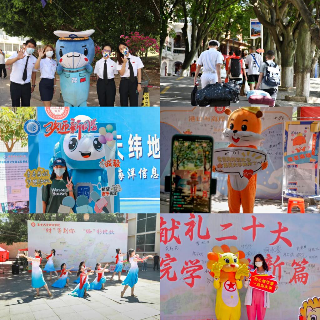 迎新中,各学院也纷纷通过各种方式充分展示自己的学院特点和迎新特色。财经学院将习近平总书记寄语和中国地图设计成迎新展板,将592位新生的名字根据生源地印在地图中不同的省份上;师范学院在迎新展板上用盲盒拼出“师”字,盲盒中是师范学院吉祥物“小狮”的周边文创产品以及学长学姐们对新生的期望与祝福;工商管理学院立着《管院快报》迎新打卡展板,报纸刊号5201314寓意对新生们的欢迎和长长久久的爱护;海洋装备与机械工程学院在迎新现场设置科创展区,现场演示智能车、机械手臂、无人车、3D打印等学生科创作品;理学院组织新生给四年后的自己写信,报到时在班助的引导下投入时光邮筒;海洋文化与法律学院在迎新现场展示年画、版画、团扇等传统手工作品,将中华传统文化元素融入迎新全过程等等。
