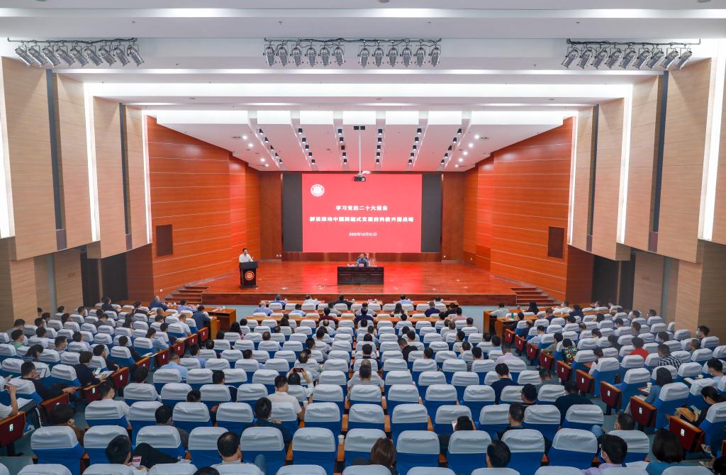10月31日下午,我校邀请中国人民大学荣誉一级教授、哲学院博士生导师郭湛来校作“学习党的二十大精神”专题辅导报告。全体校领导,机关各部处(含教辅机构、其他机构)主要负责人,各二级学院党委书记、院长(含主持工作副院长),机关副科级以上干部参加本次报告会。报告会由校党委书记沈灿煌主持。